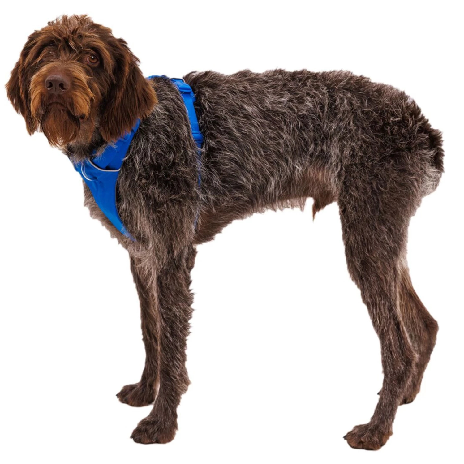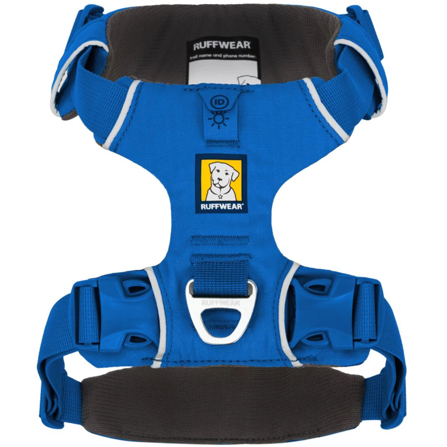 - Two leash attachment options: one polyester webbing ring on the front and one aluminum V-ring on the back