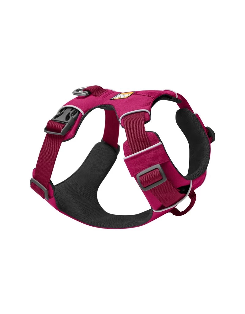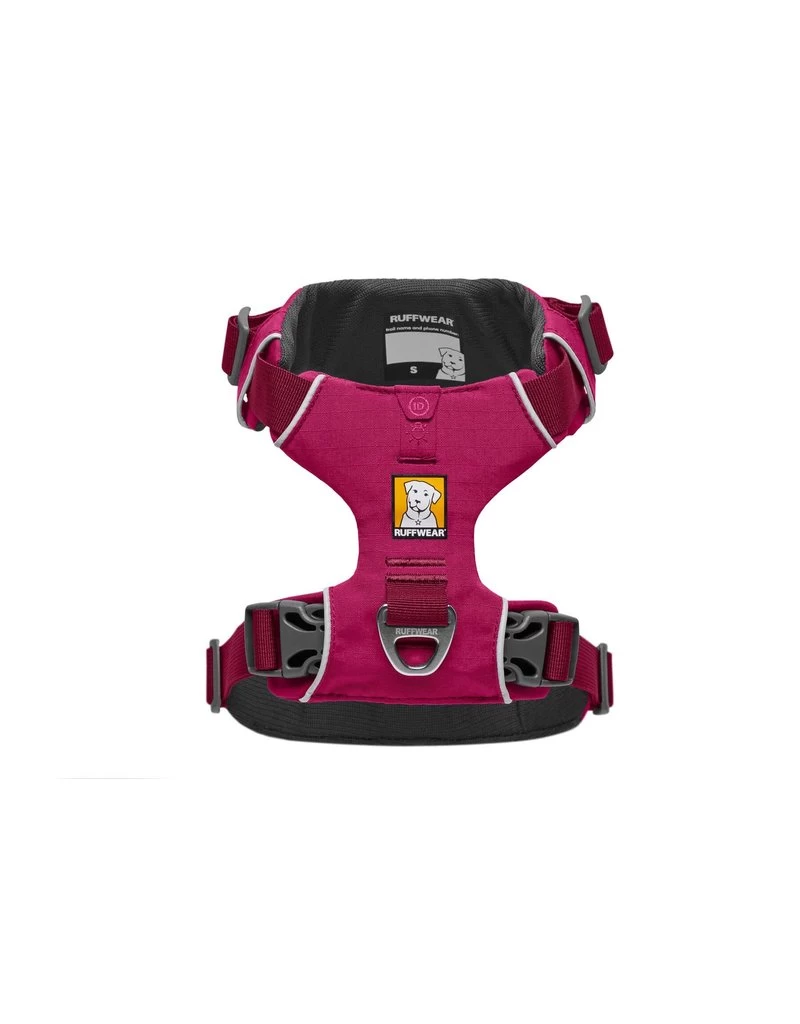 The Ruffwear Front Range Harness is an everyday harness that is easy to put on and comfortable for dogs to wear. The harness features two leash attachment points: an aluminum V-ring centered on the dog’s back for everyday walks, and reinforced webbing at the dog’s chest to resist pulling and offer additional control. The ID pocket keeps dog tags quiet and easily accessible.