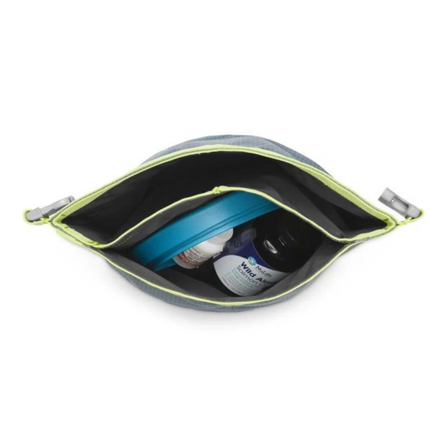 Separate internal compartment stashes collapsible bowls and other food items